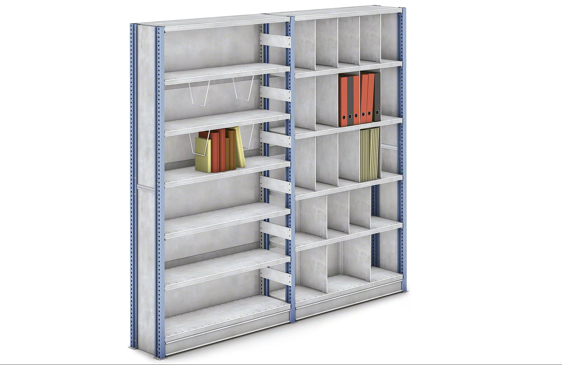 Gran versatilidad: la variedad de accesorios disponibles facilita una completa personalización de las estanterías para adaptarlas a una gran diversidad de cargas medias y ligeras.