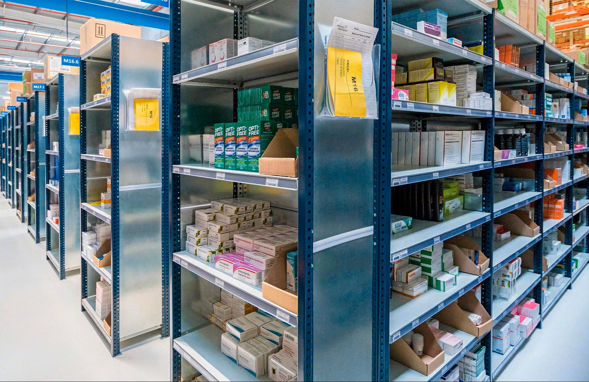 E-commerce: el uso de divisorias para formar casilleros y de sistemas de asistencia al picking como pick-to-light hacen de las M3 unas estanterías muy apropiadas para almacenes de e-commerce.