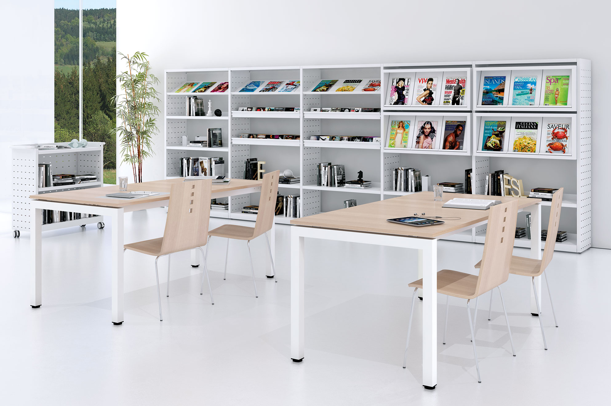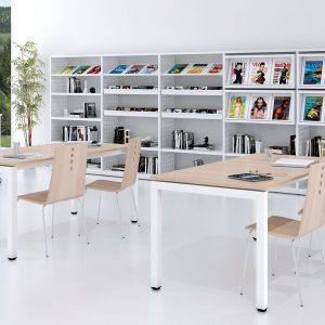 Este sistema permite organizar fondos bibliográficos, facilitar el acceso y optimizar el espacio de almacenamiento en salas de lectura o consulta. Su construcción metálica garantiza robustez y mantenimiento bajo, acorde con el uso intensivo en ambientes públicos. El diseño funcional se combina con acabados estándar de EuroShelves, pensados para entornos institucionales.